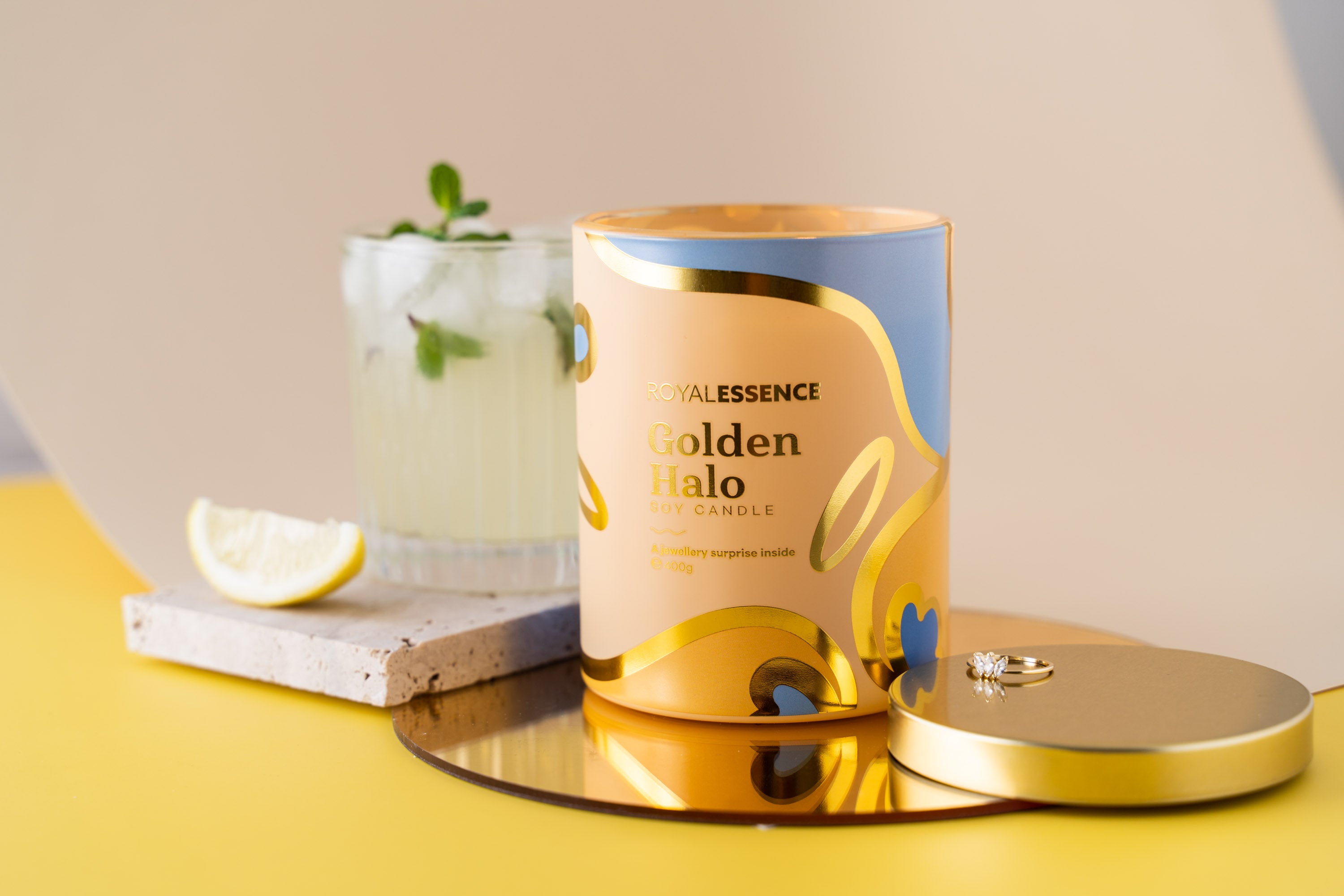 Each candle contains a generous 400 gram natural soy wax that has 90-100 hours of burn time. With a much cleaner burn and amazing fragrance throw, these candles are perfect for gifting! This candle also treasures a gorgeous gold vermeil jewellery inside for an experience like no other.